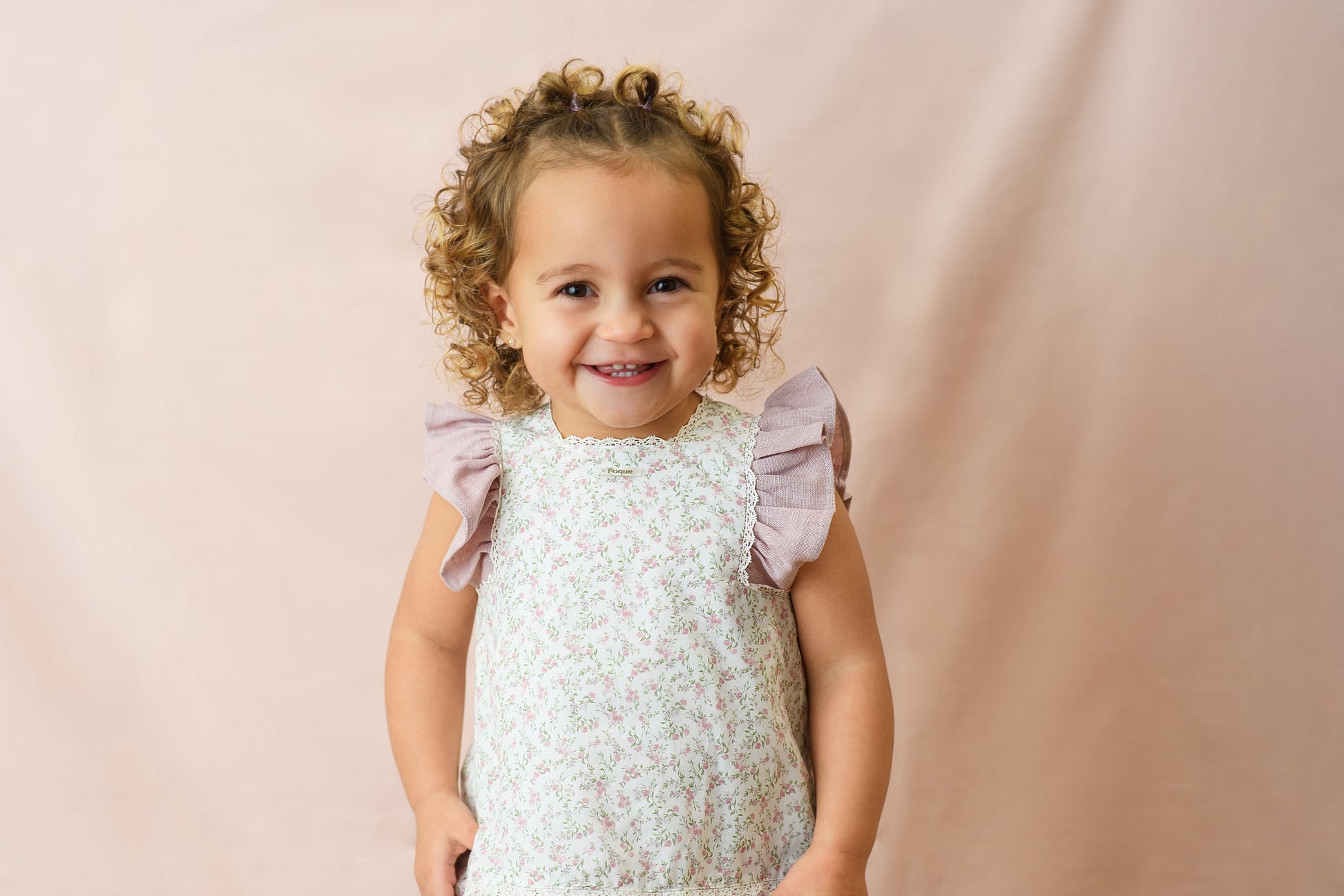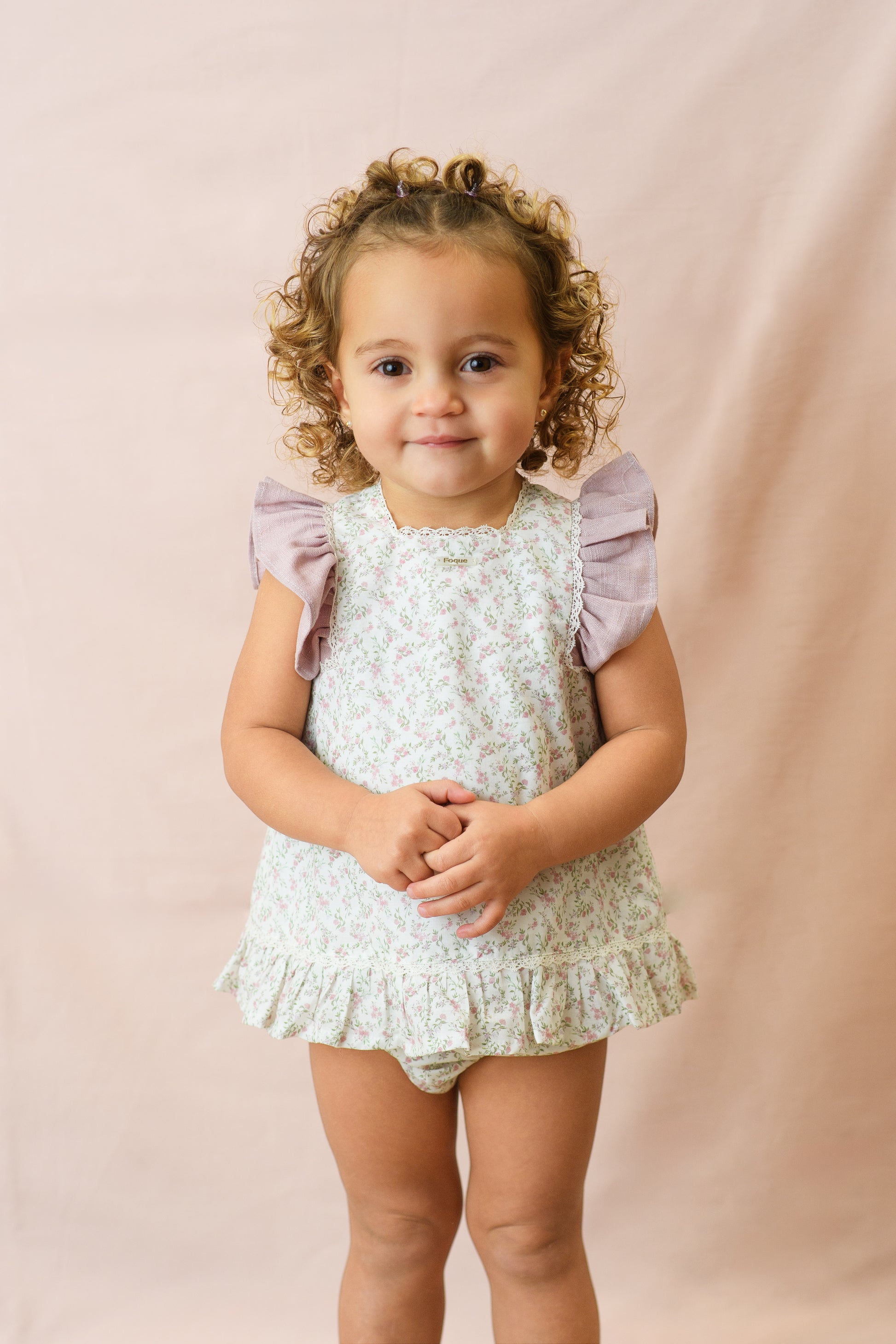 Un conjunto delicado y lleno de encanto que captura la esencia más dulce de la moda infantil española. Este diseño destaca por su romántico estampado floral en tonos suaves, ideal para crear looks inolvidables.
