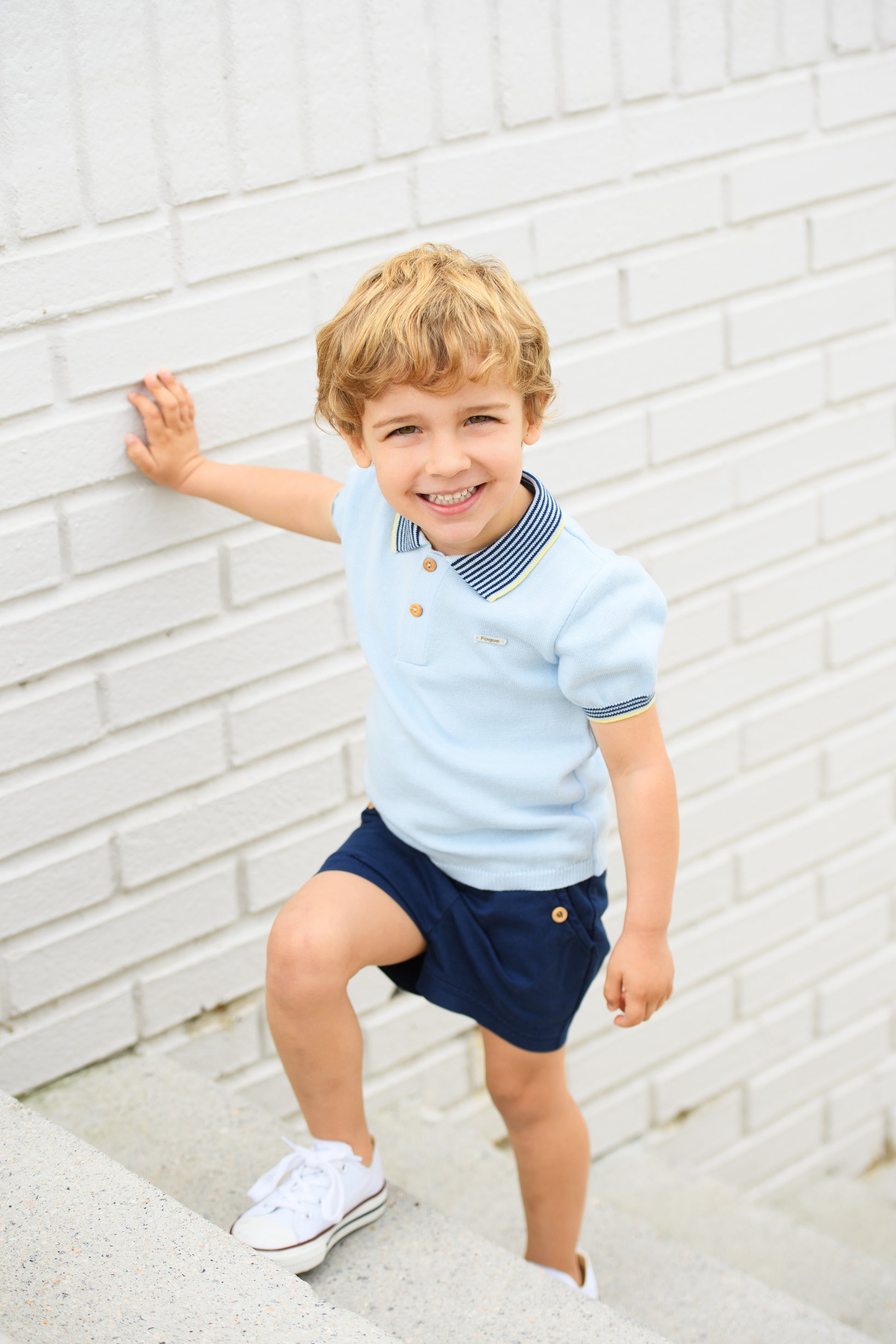 Conjunto bebé niño polo celeste y short marino