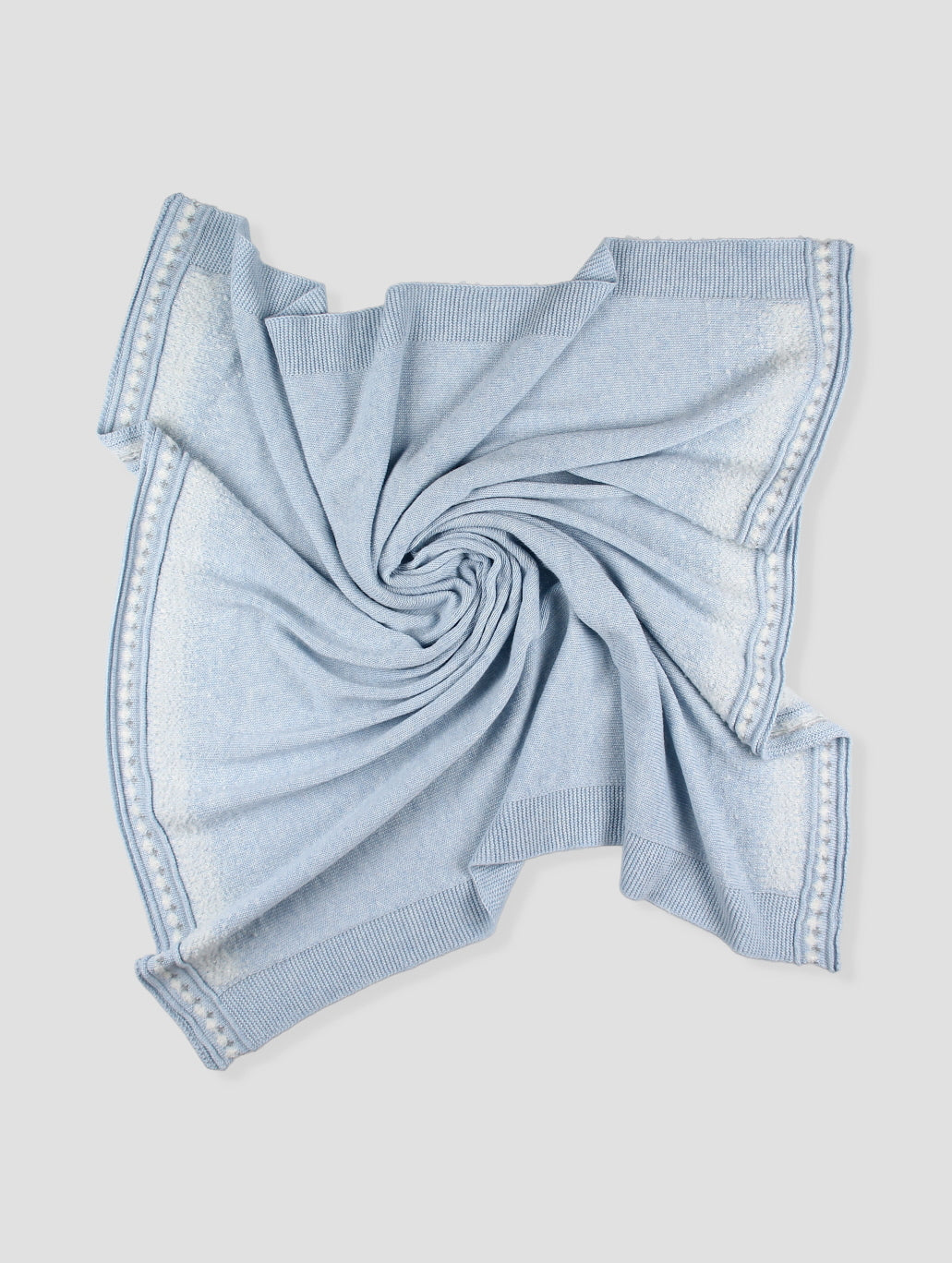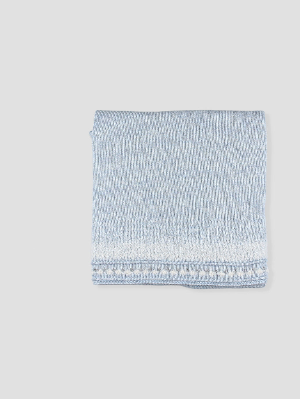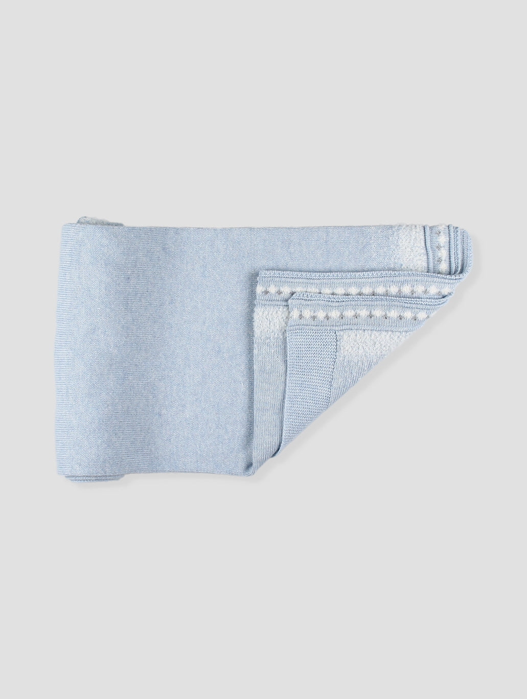 Esta dulce toquilla de punto azul bebé destaca por su delicada greca con ovejitas blancas, aportando un toque tierno y acogedor a los primeros días del recién nacido. Con acabados cuidados y cenefa decorativa a contraste, es ideal para envolver al bebé en cualquier momento, tanto en casa como en el cochecito.