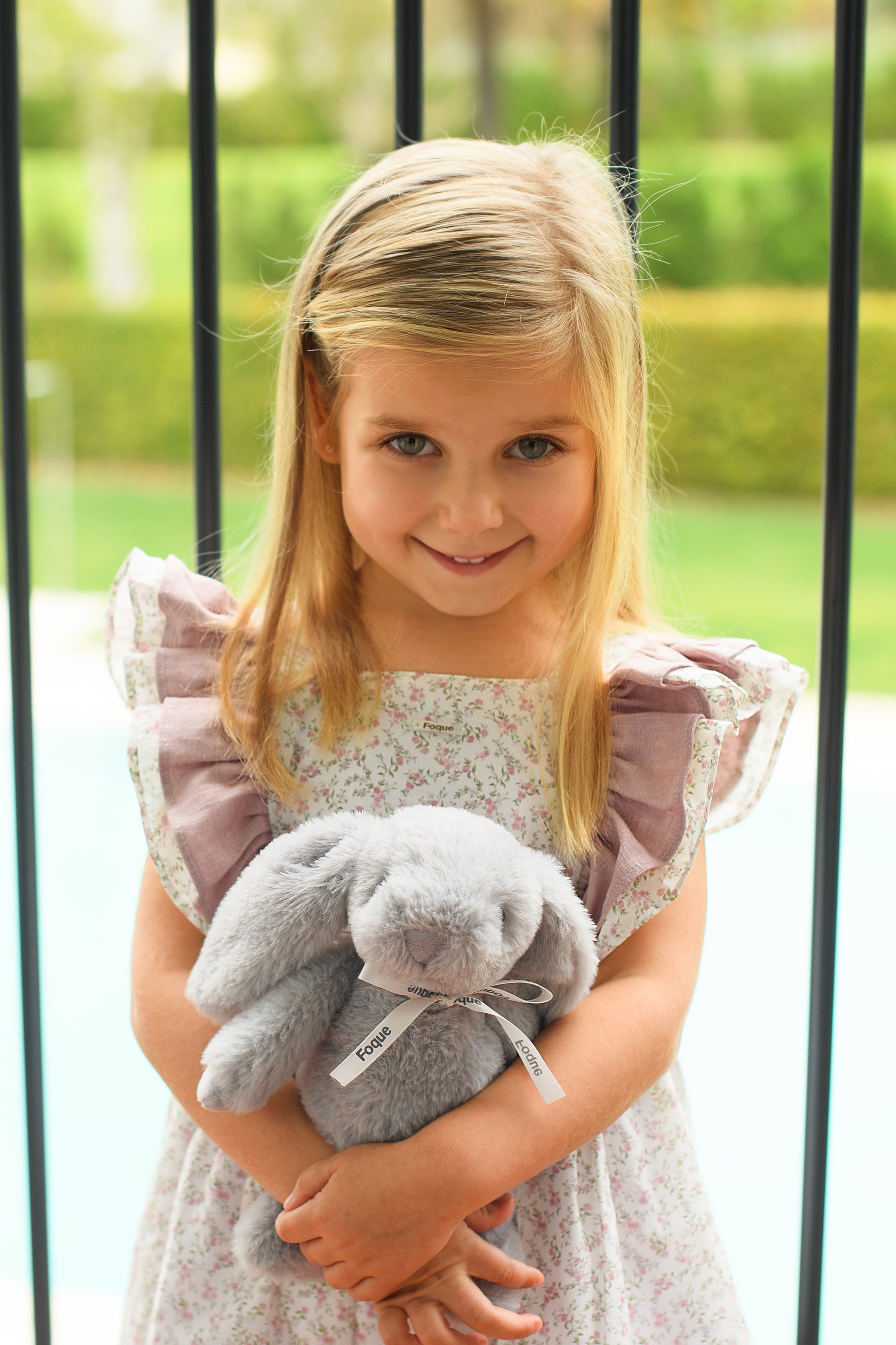 Un vestido encantador que refleja la dulzura y elegancia de la moda infantil española. Su delicado estampado floral en tonos suaves aporta un aire romántico y atemporal, perfecto para ocasiones especiales.